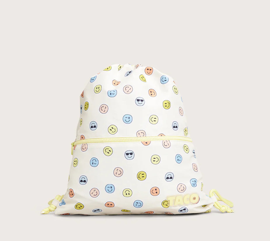 Que ce soit pour le cours d'éducation physique, le soccer, la piscine ou une sortie au parc, ce sac de sport à cordons est le choix parfait pour les enfants actifs. Son tissu en nylon léger, son imprimé smiley amusant et sa conception pratique à cordons coulissants en font un indispensable du quotidien. Il se glisse facilement dans un casier ou un sac à dos, et se porte confortablement sur les épaules.