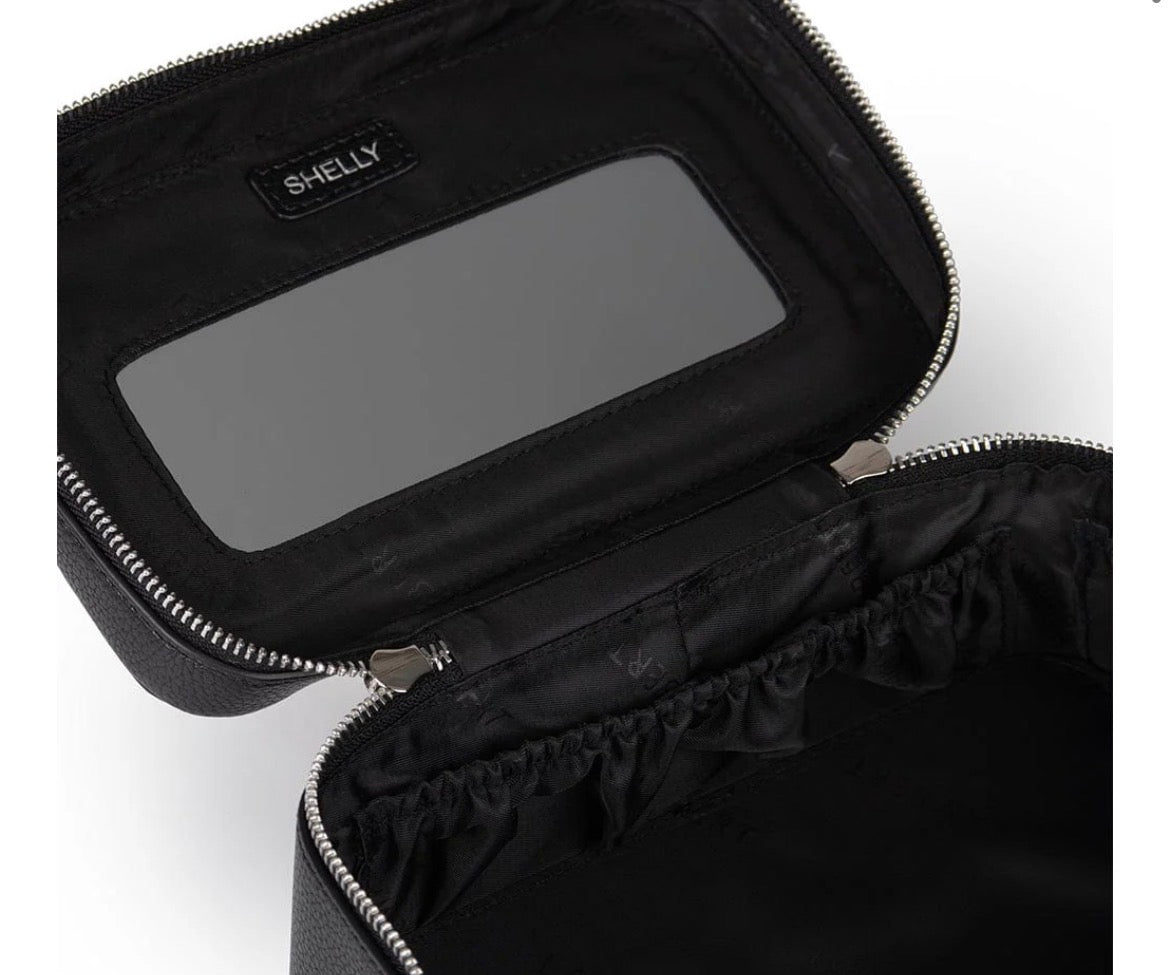 La Shelly est l’alliée idéale pour organiser vos essentiels de beauté et de soins. Conçue pour le quotidien comme pour les escapades, elle offre plusieurs poches intérieures pour un rangement optimal. Elle offre aussi un petit détail qui fait toute la différence : un miroir discret intégré sous le couvercle, parfait pour les retouches rapides en déplacement. Sa matière en cuir vegan texturé apporte une touche élégante à cet indispensable pensé pour suivre votre rythme.